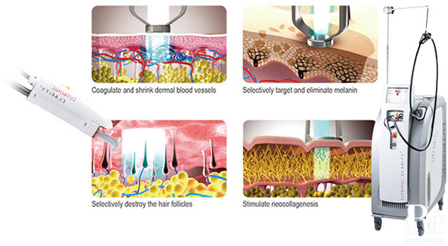 美國原廠Clarity Laser運用波長755奈米Alexandrite雷射選擇性破壞黑色素之特性,並配合大光圈與長脈衝時間, 達到快速淺層除斑深層除毛之卓越療效。尤其是針對一般脈衝光與二極體雷射極為棘手之淡色細毛更是凸顯其獨到清除效果。