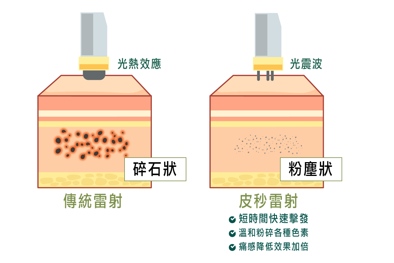 傳統雷射通常透過「熱」來燒灼斑點,容易導致紅腫與「熱熱的」感覺,而皮秒產生的是「光震波」。較低的熱傷害意味著術後較少紅腫,且大幅降低了亞洲人容易出現的「發炎後色素沉澱」(反黑)風險。