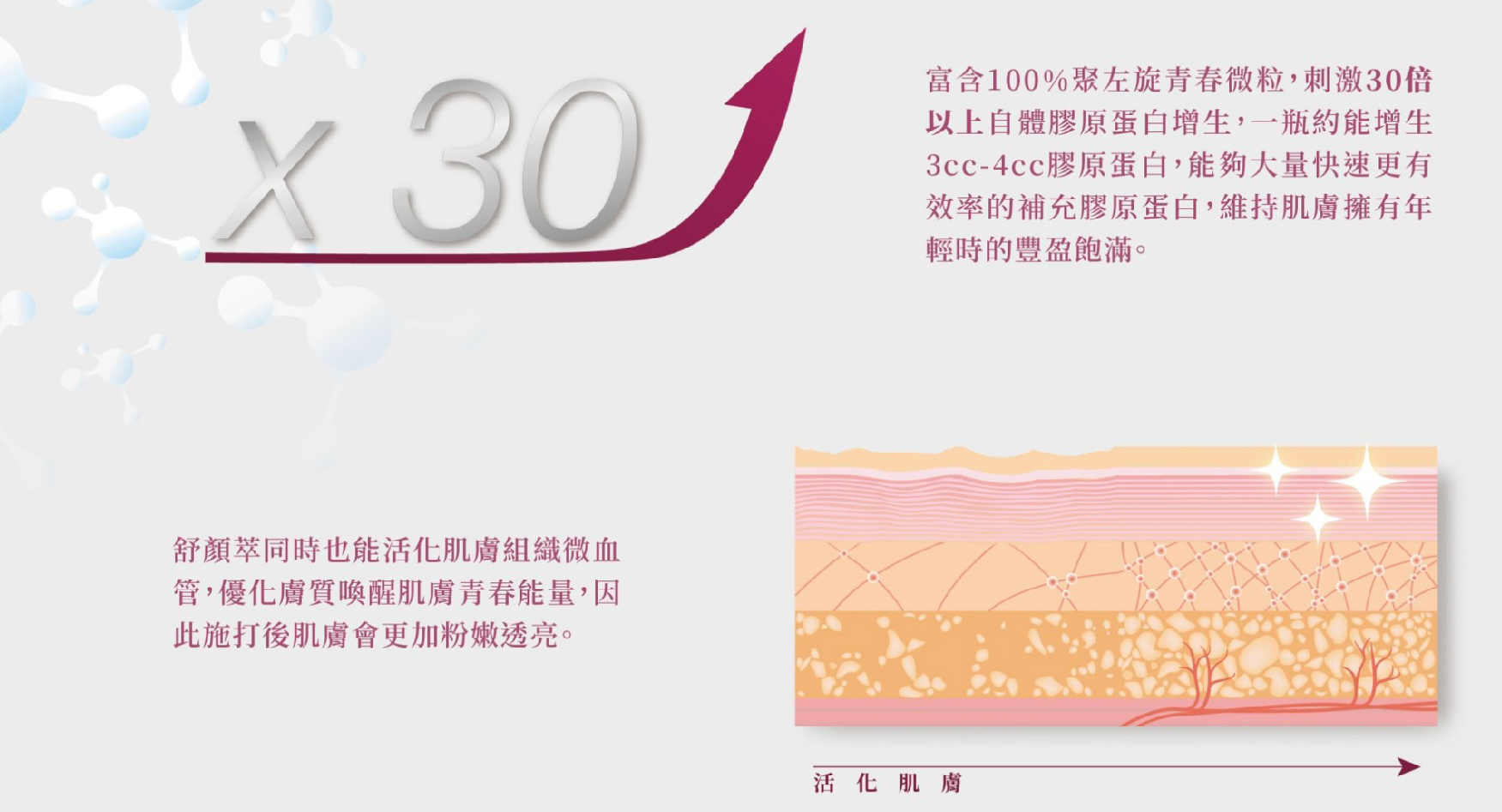 隨著年齡增長,臉部肌膚的膠原蛋白漸漸流失,臉部肌肉失去了支撐的力量, Sculptra舒顏萃不但可以填補凹陷,還可刺激膠原蛋白增生,找回肌膚失去的彈性!